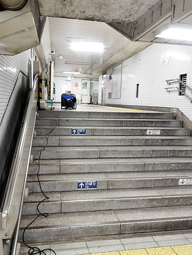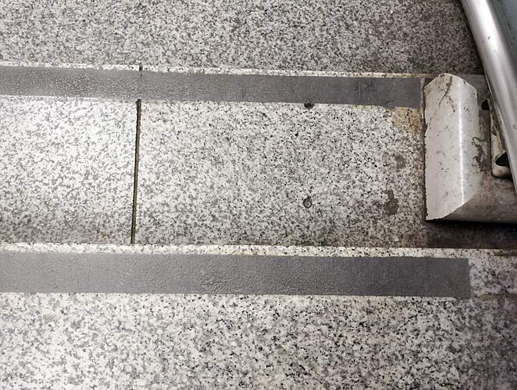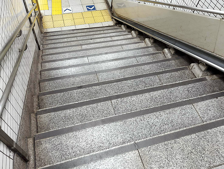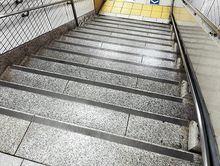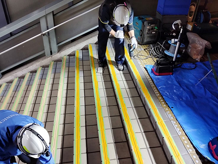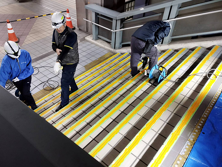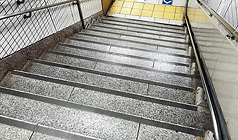 地下鉄の駅構内の階段にて、滑り止め工事を実施いたしました。