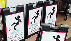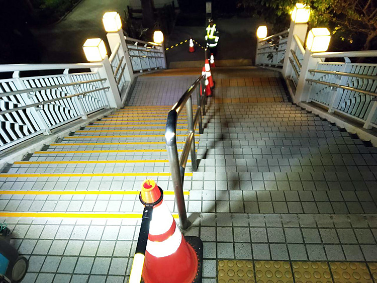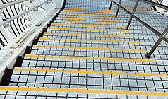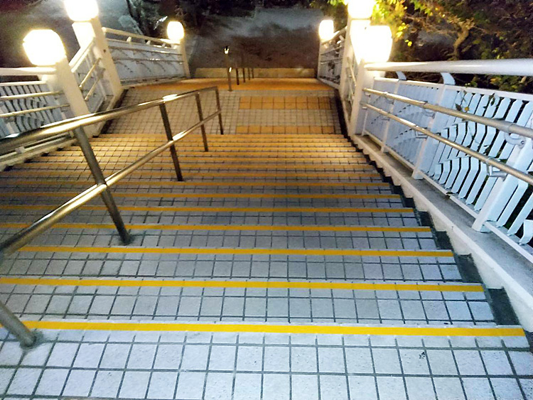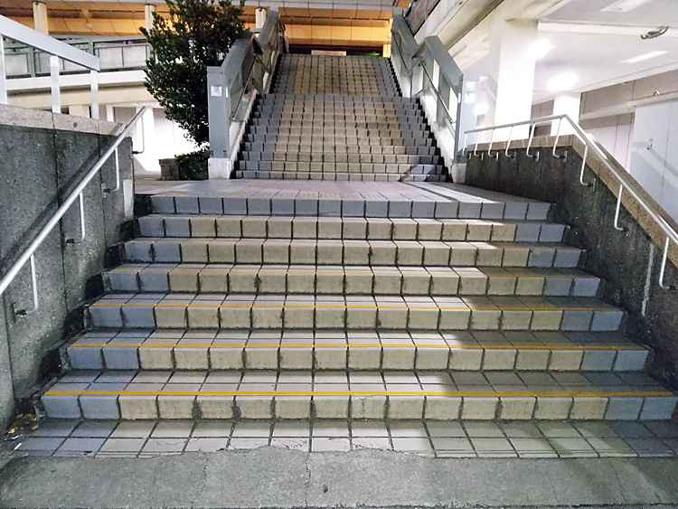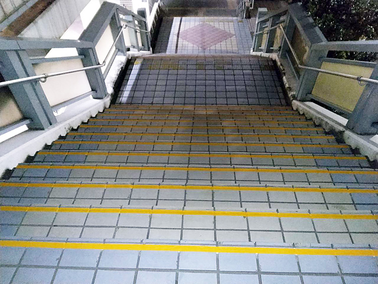 駅ビルの階段の縁に黄色の滑り止めテープを設置いたしました。